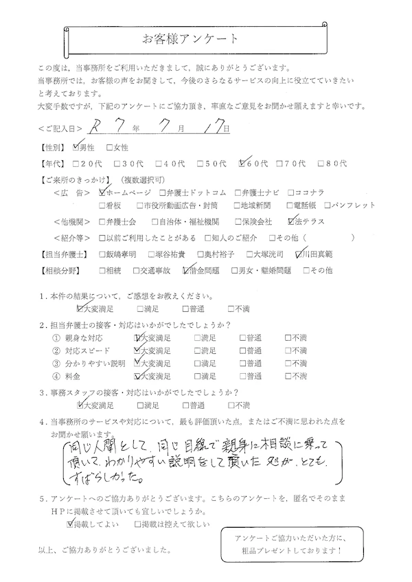 同じ人間として,同じ目線で親身に相談に乗って頂いて,